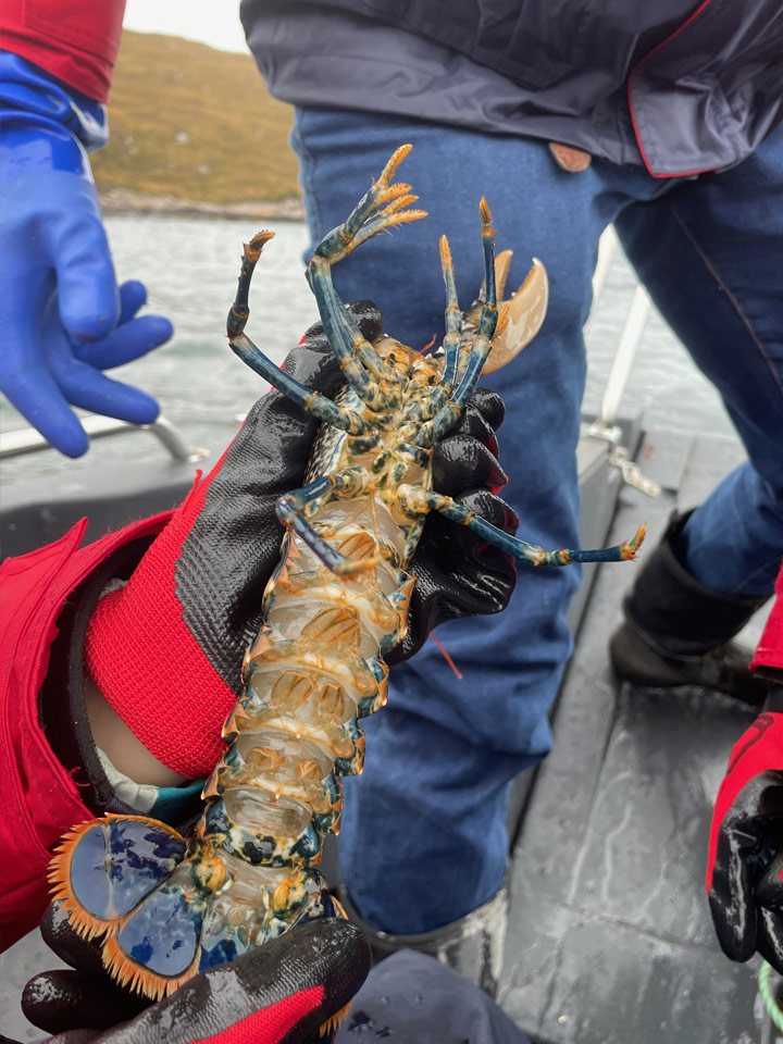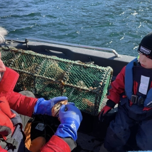 Some great peer support from hunter and gillies, introducing Ella to mada chuain and talking through all our regular survey creel species and their wee quirks….